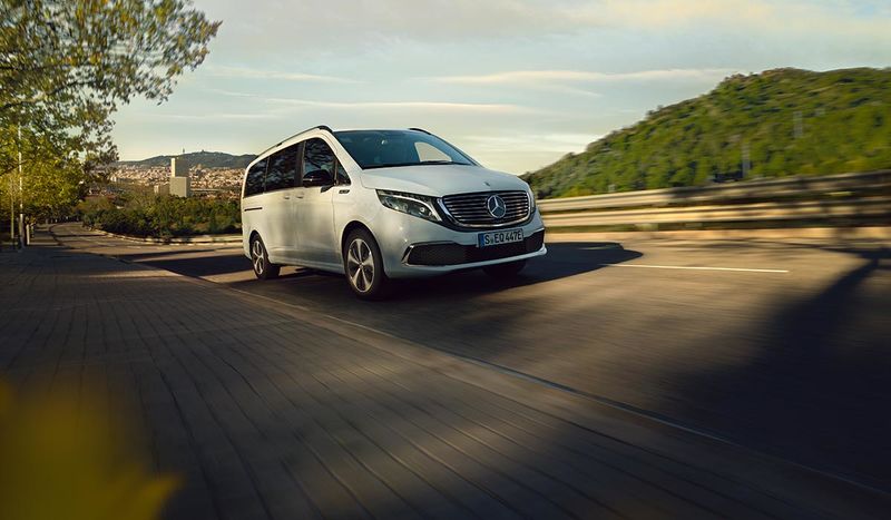 Vervollständigt wird die Attraktivierung des EQV durch Sicherheits- und Assistenzsysteme[10] mit zusätzlichen und teilweise weiterentwickelten Funktionen. So beinhaltet zum Beispiel der Aktive Brems-Assistent jetzt die Kreuzungsfunktion und kann auch vor orthogonal kreuzenden oder entgegenkommenden Fahrzeugen und gefährlichen Überholmanövern warnen und im Notfall bremsend eingreifen sowie beim Abbiegen unterstützen.